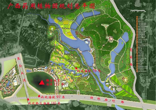 中医药科普文化休闲园(广场)项目为一开放性的市民休闲广场,以景观药用植物树林为主,建设地点位于广西药用植物园内西北面(兴宁区政府办公楼对面),北侧为昆仑大道,西侧为城市快速干道,用地面积200亩,海拔96—120米(城市道路海拔为97米),为药园西面最高点。
